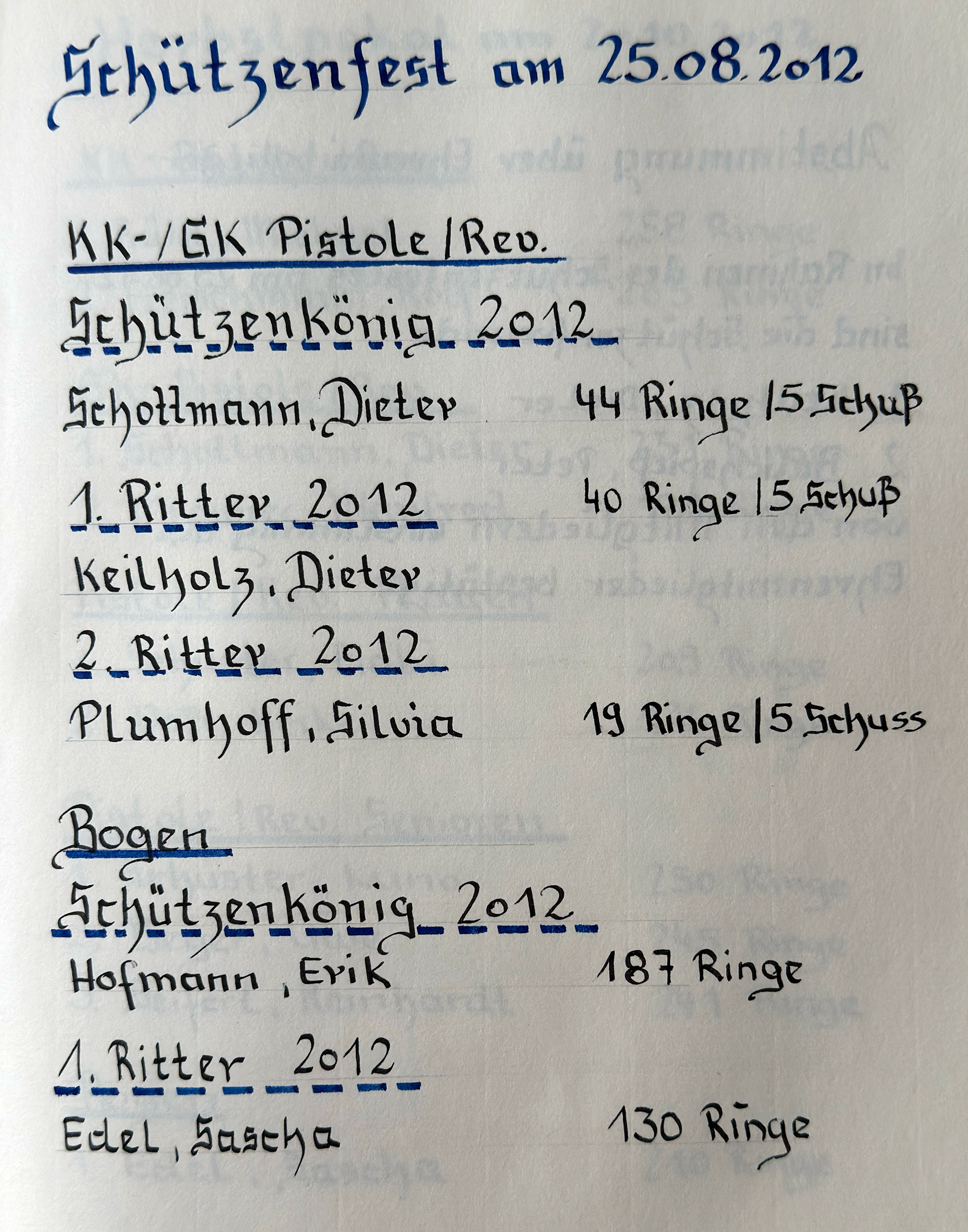 - 🥈 1. Ritter 2012: Dieter Keilholz – 40 Ringe / 5 Schuss